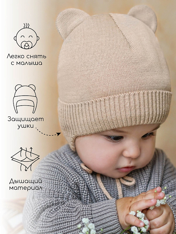 Шапка вязаная AmaroBaby Pure Love Bear Winter зимняя с утеплителем бежевая 38Нет оценокХарактеристики