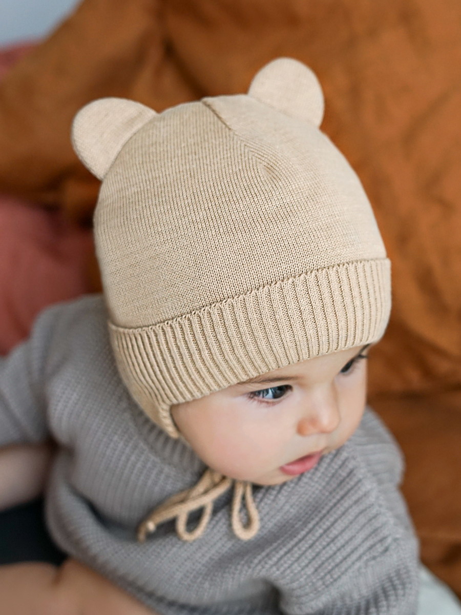 Шапка вязаная AmaroBaby Pure Love Bear Winter зимняя с утеплителем бежевая 38