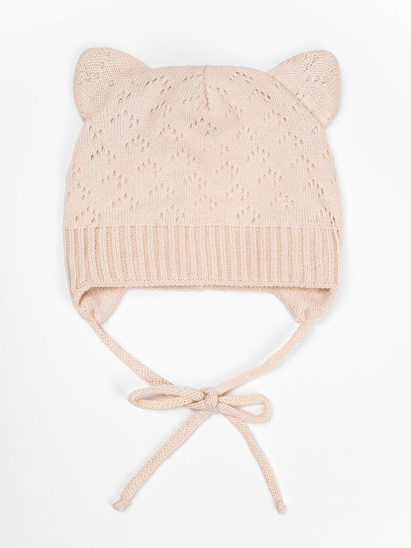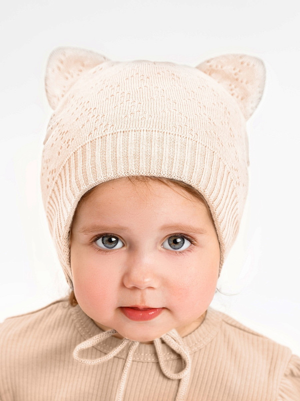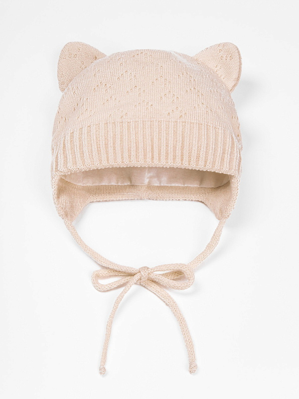 Шапка вязаная AmaroBaby Pure Love Kitten с подкладом молочная 38