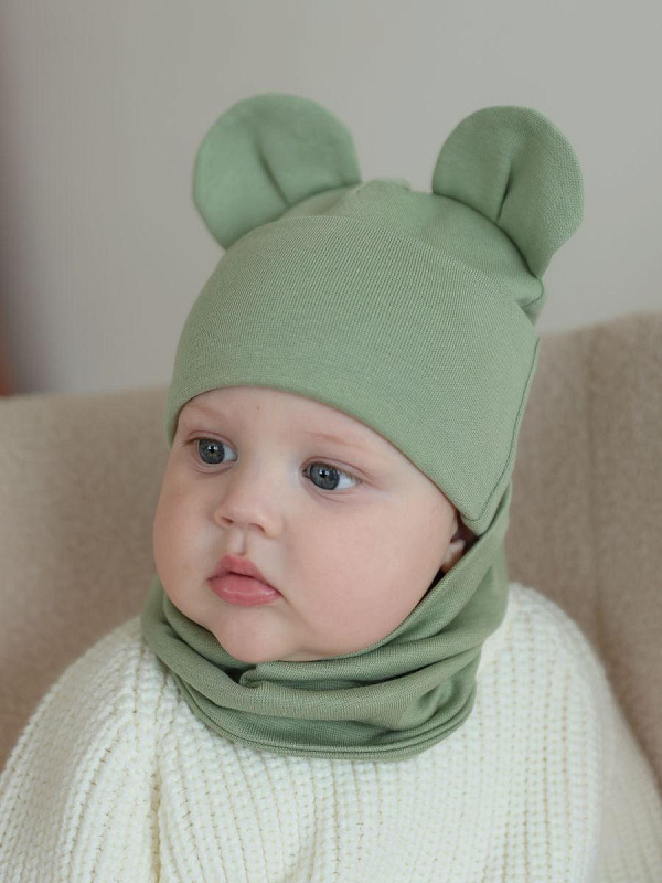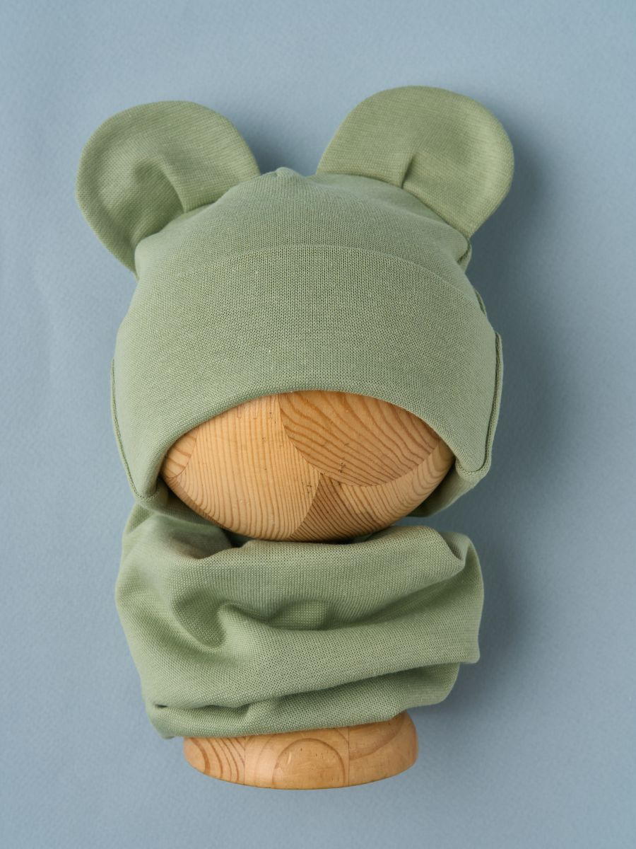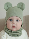 Шапка-котелок и снуд Little Star Мишка рибана начес 80932 (ЧЗ-мз) фисташковый 36