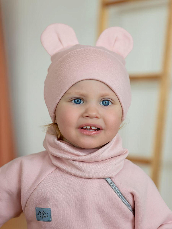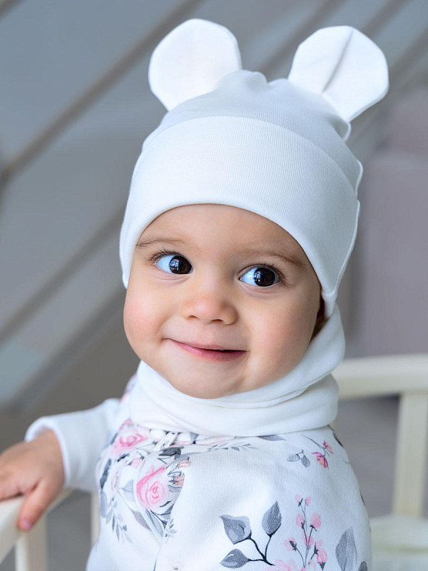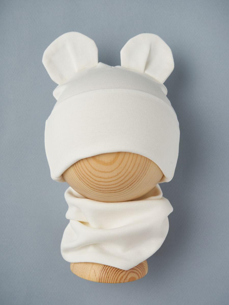 Шапка-котелок и снуд Little Star Мишка рибана начес 80932 (ЧЗ-мз) крем 36