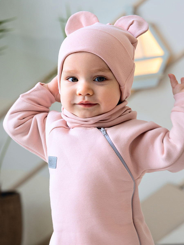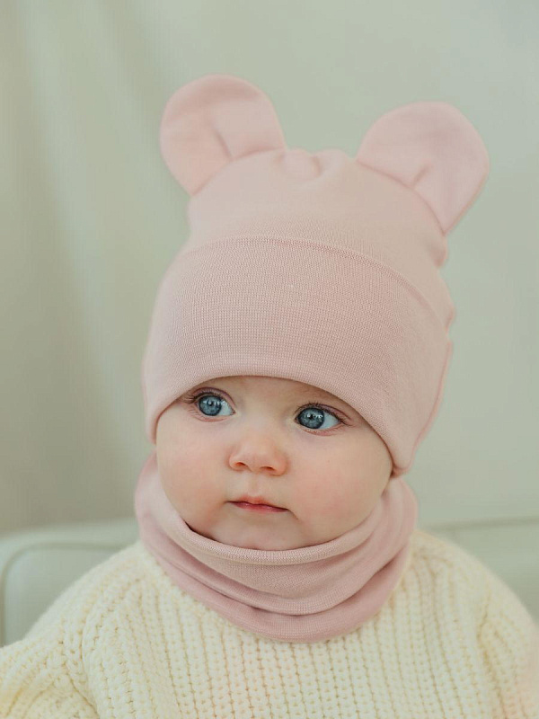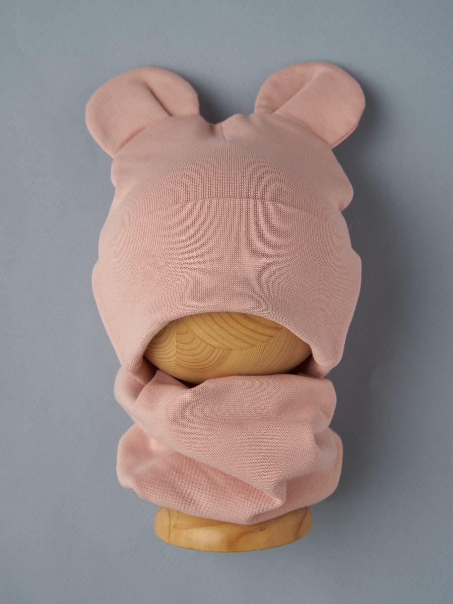 Шапка-котелок и снуд Little Star Мишка рибана начес 80932 (ЧЗ-мз) светло-розовый 36