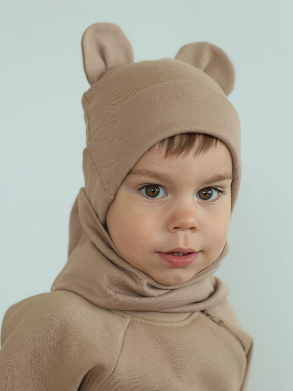 Шапка-котелок и снуд Little Star Мишка рибана начес 80932 (ЧЗ-мз) темно-бежевый 36