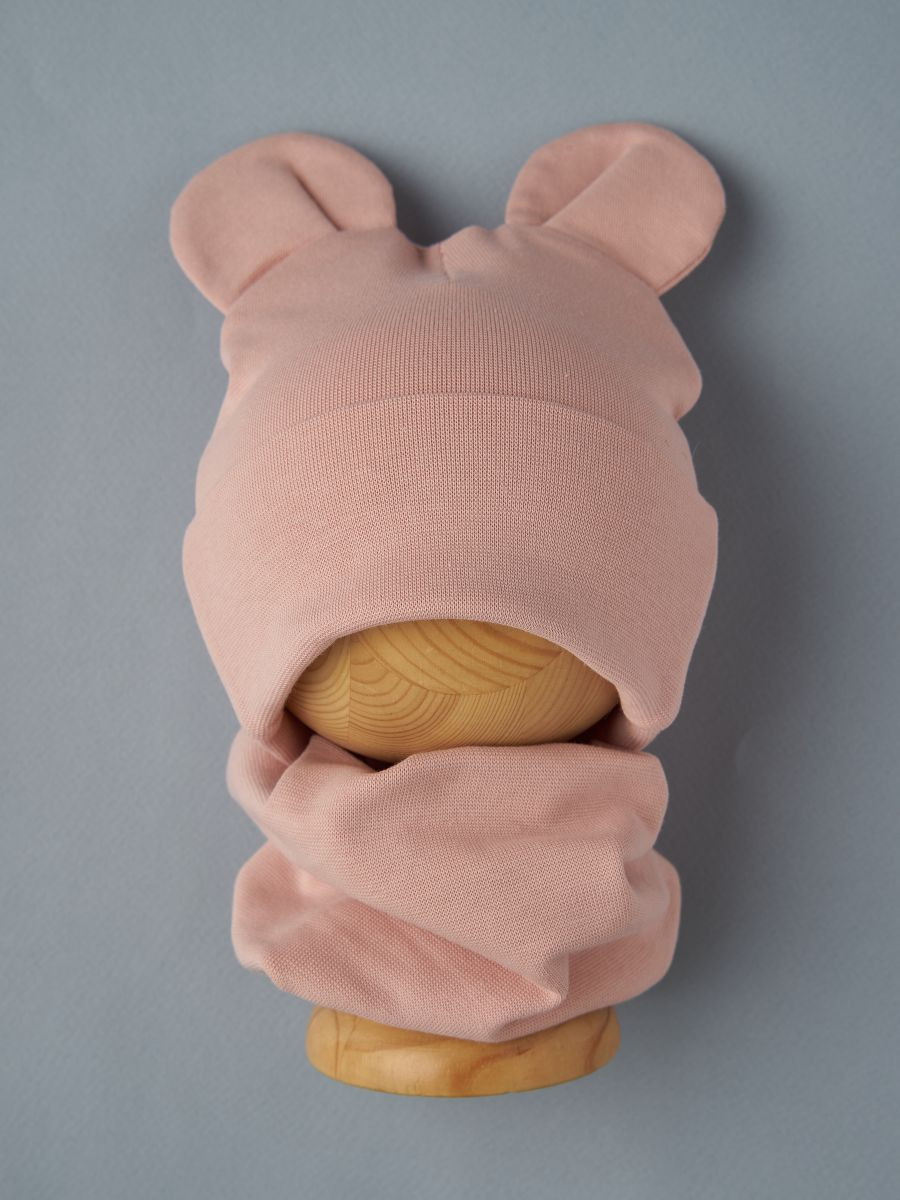 Шапка-котелок и снуд Little Star Мишка рибана начес 80932 светло-розовый 36