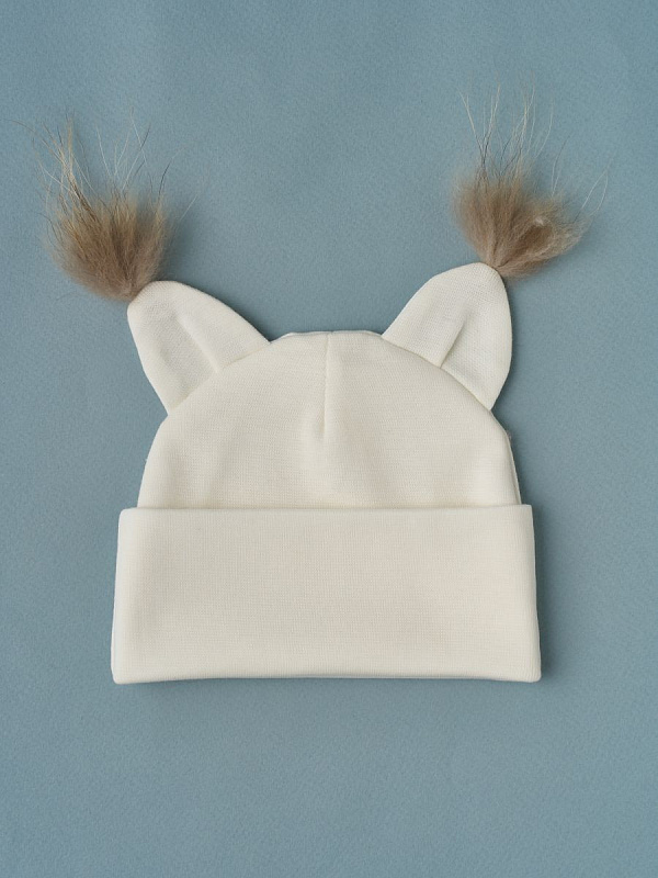 Однослойная шапочка-котелок с отворотом и веселыми ушками. Ткань не будет раздражать голову. Модную и мягкую шапочку малыш может носить круглый год, защищая ушки от сквозняков и головку от перегрева на солнце. Удобные завязочки.