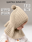 Шапка-шлем вязаная AmaroBaby Bonny зимняя с утеплителем ЧЗ бежевый 42