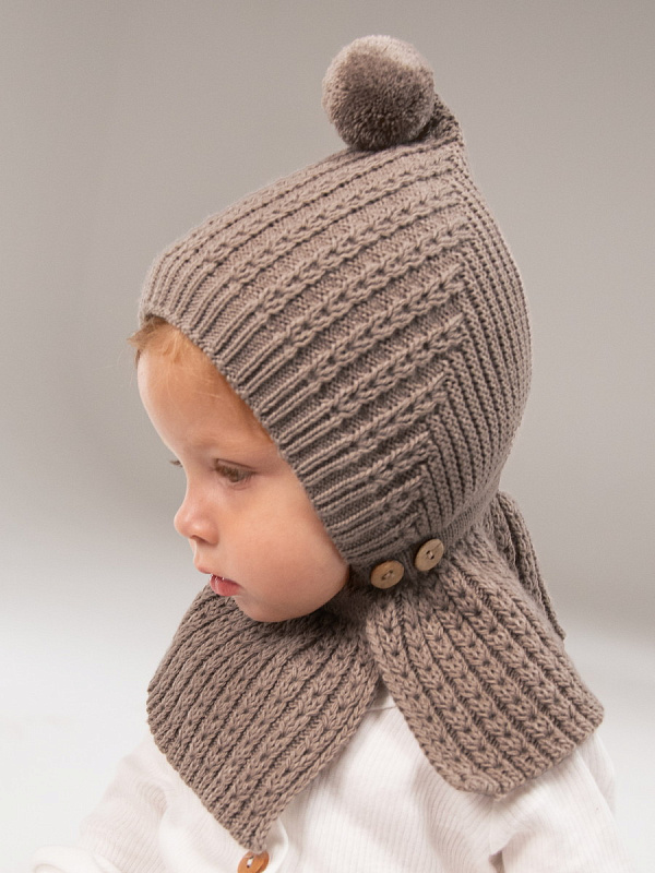 Шапка-шлем вязаная AmaroBaby Bonny зимняя с утеплителем ЧЗ коричневый 42