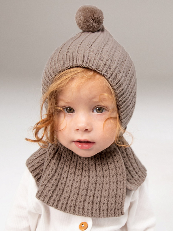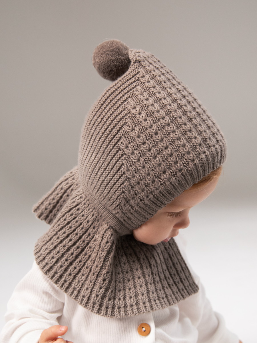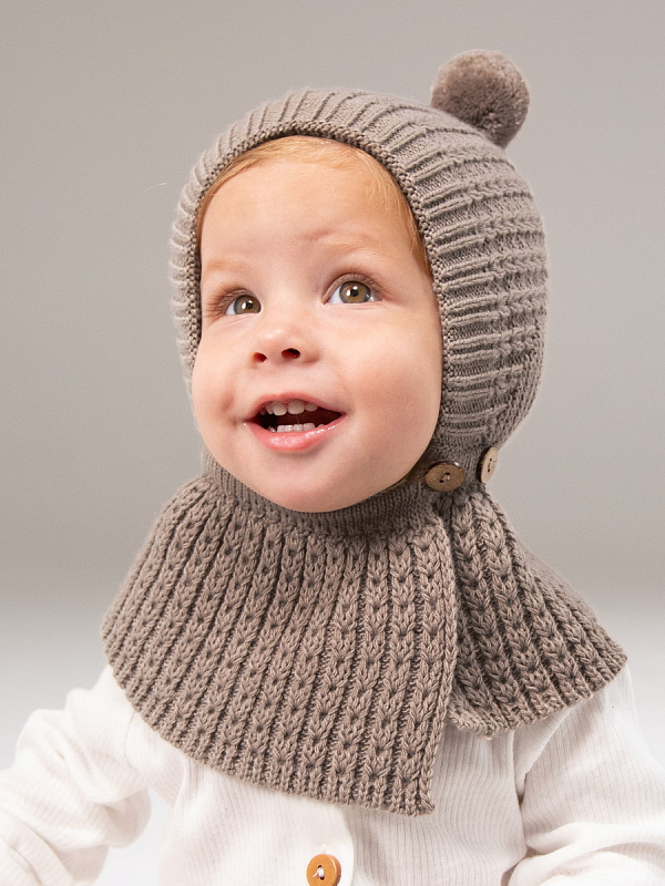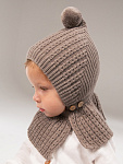 Шапка-шлем вязаная AmaroBaby Bonny зимняя с утеплителем ЧЗ коричневый 44