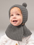 Шапка-шлем вязаная AmaroBaby Bonny зимняя с утеплителем ЧЗ серый 38
