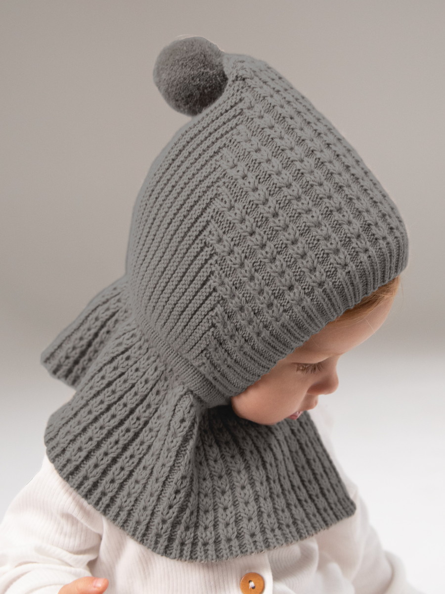 Шапка-шлем вязаная AmaroBaby Bonny зимняя с утеплителем ЧЗ серый 46