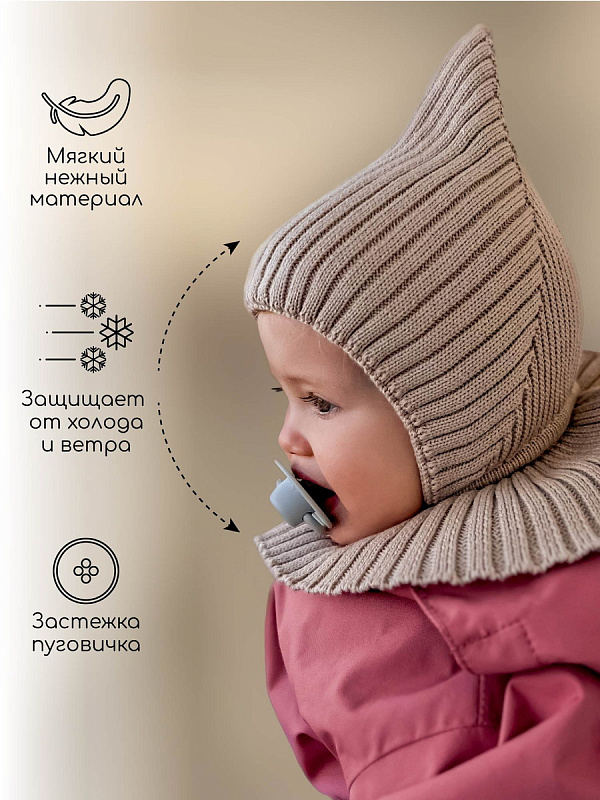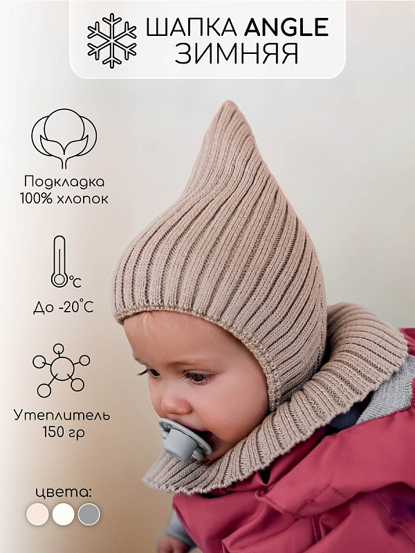 Шапка-шлем вязаная AmaroBaby Pure Love Angle зимняя с утеплителем бежевый 40