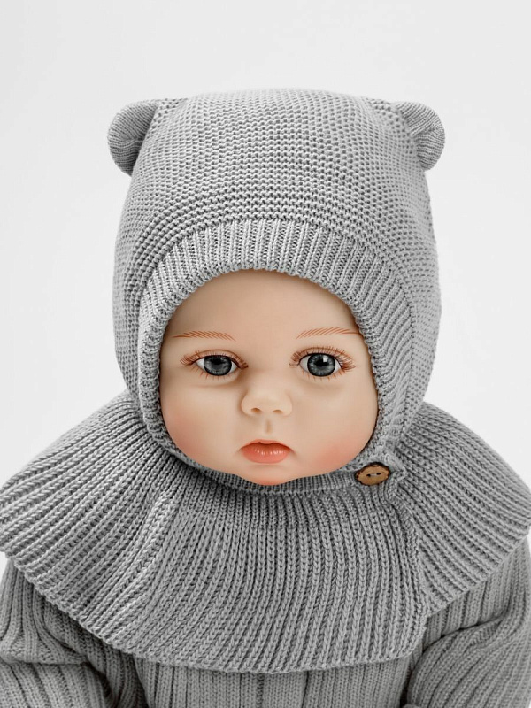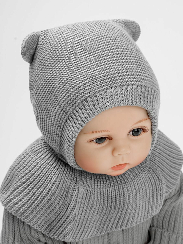 Шапка-шлем вязаная AmaroBaby Pure Love Helmet с подкладом серый серый 80