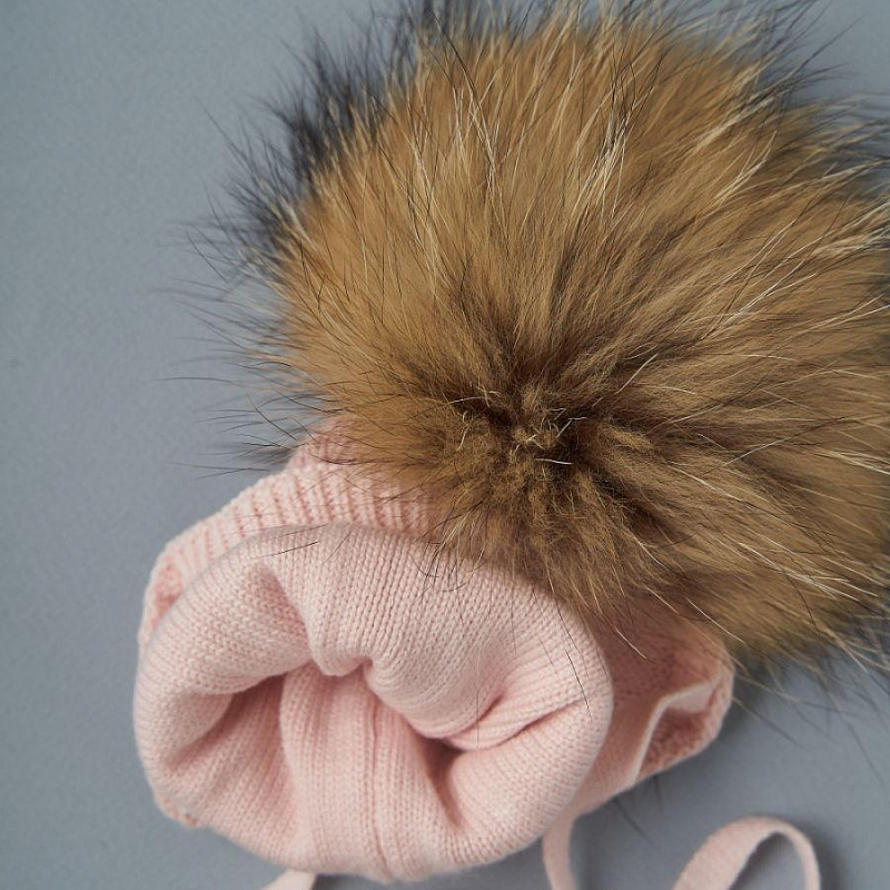 Шапочка двойная вязка Little Star Альба бумбон - мех енота 5570 (ЧЗ-нк) облака розовый 36