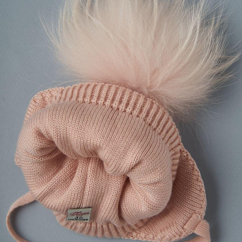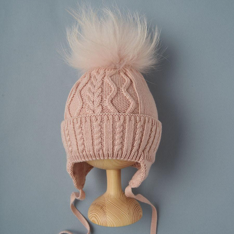 Зимняя шапочка с натупальным бумбоном из меха енота