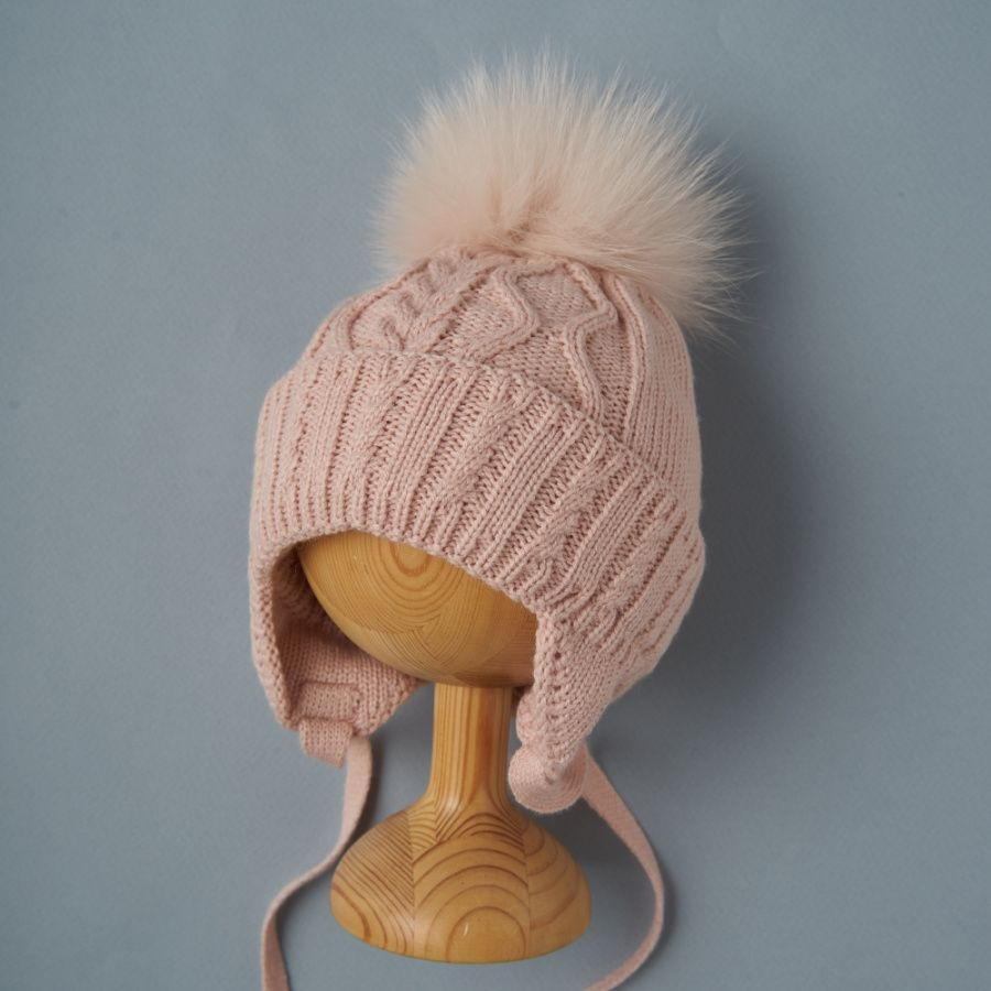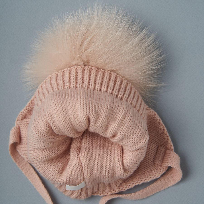 Шапочка двойная вязка Little Star Восхищение бумбон - мех песец 5574 (ЧЗ-нк) пыльная роза 34