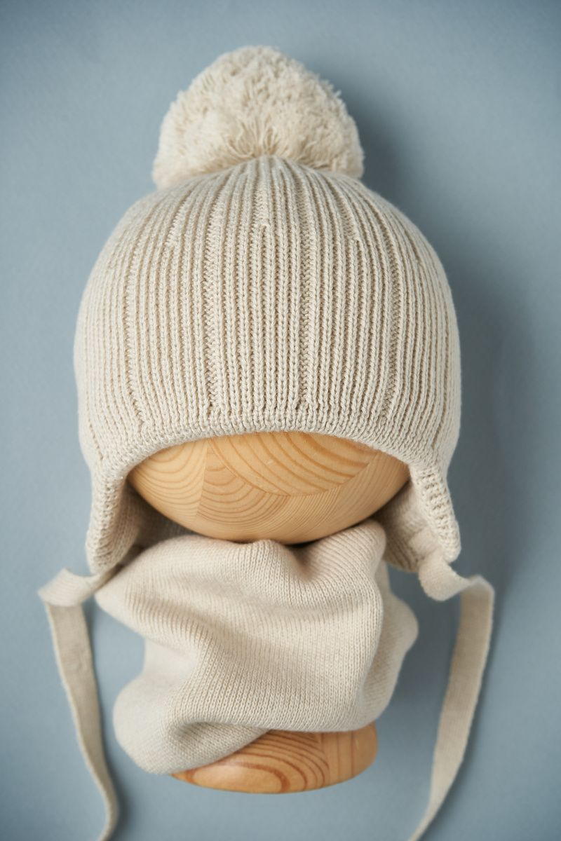Шапочка хлопковая вязаная, подклад интерлок и снуд Little Star 55770 (ЧЗ-нк) бежевый 38
