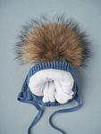 Зимняя шапочка с подкладой из флиса и натуральным бумбоном из меха енота.