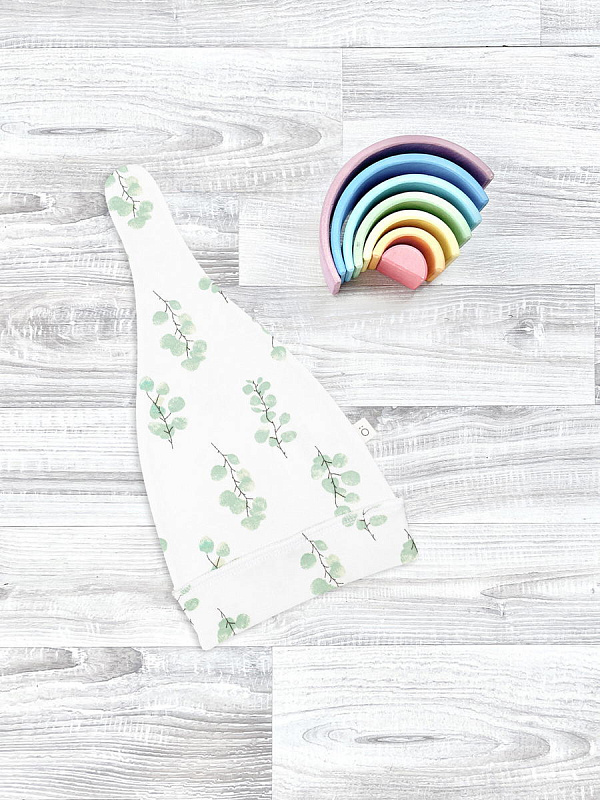 Шапочка с узелком Mjölk [мьёльк] Эвкалипт выполнена из нежного трикотажного 100% хлопка. Материал эластичный, не вызывает аллергии, дарит ребёнку уют и комфорт, а нежный принт придаёт малышу изысканный и милый образ.
