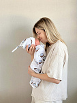 Произведено вручную в Санкт-Петербурге, с авторскими принтами и сертификатами на всю продукцию. Бережно упаковано в фатиновый мешочек и послужит хорошим подарком родным и близким к появлению на свет крошки.
