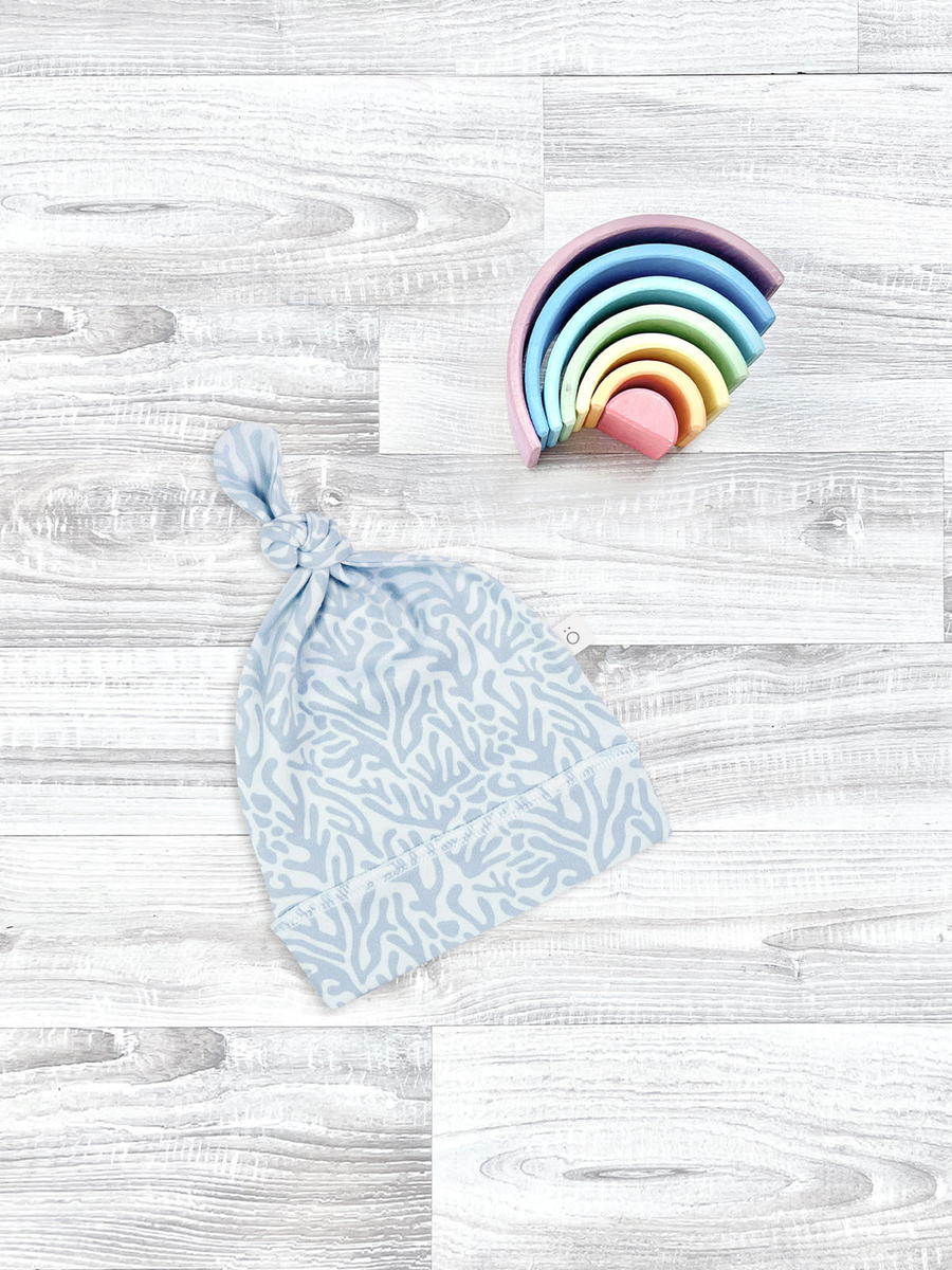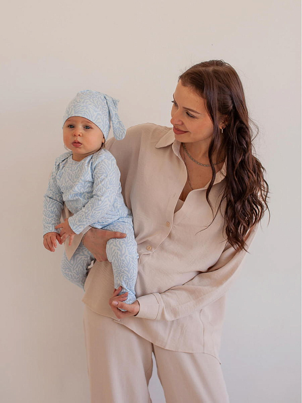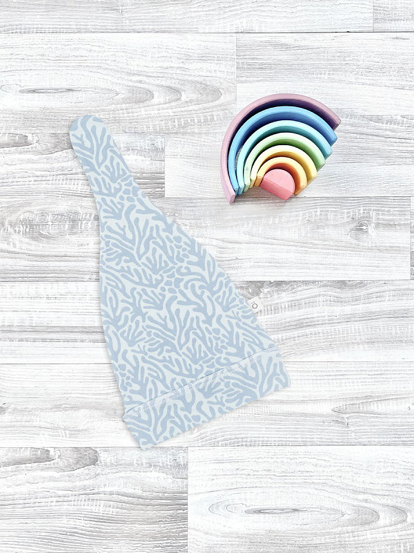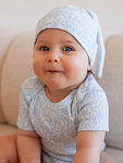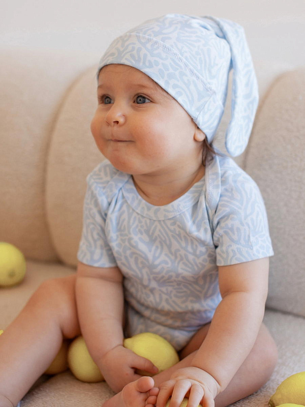 Шапочка с узелком Mjölk [мьёльк] Рифы выполнена из нежного трикотажного 100% хлопка. Материал эластичный, не вызывает аллергии, дарит ребёнку уют и комфорт, а оригинальный принт придаёт малышу яркий и нарядный образ.