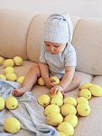 Произведено вручную в Санкт-Петербурге, с авторскими принтами и сертификатами на всю продукцию. Бережно упаковано в фатиновый мешочек и послужит хорошим подарком родным и близким к появлению на свет крошки.
