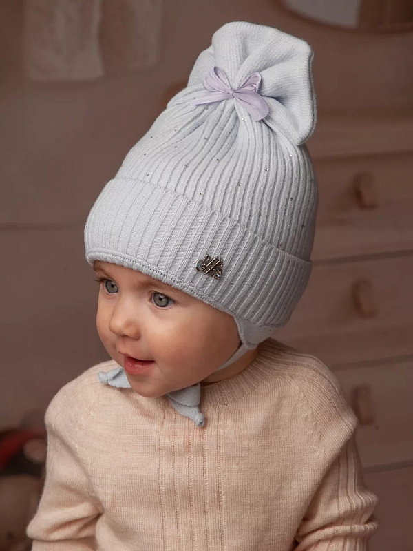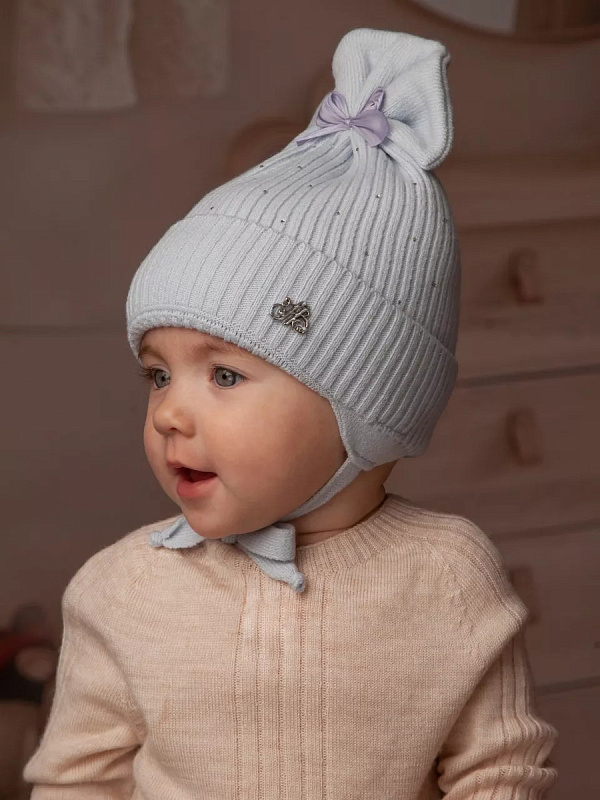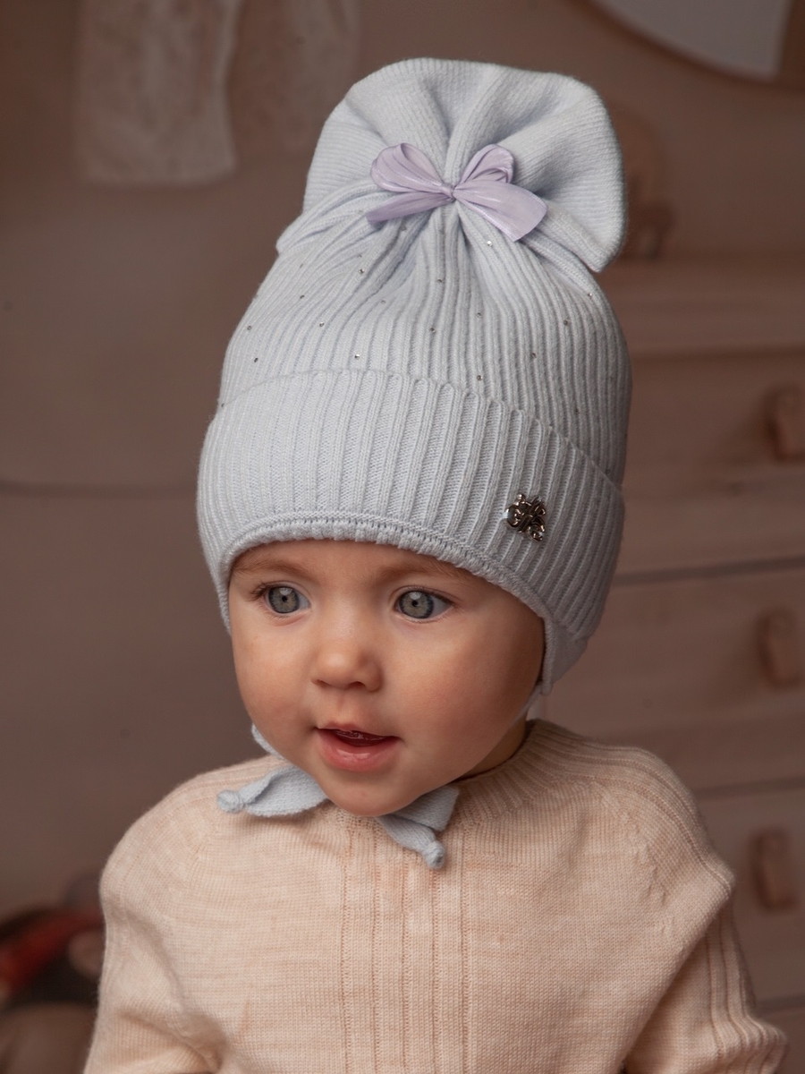 Теплая вязаная детская шапка на подкладке - незаменимый атрибут для прогулки в зимний период. Удобные завязки и дополнительные изгибы на ушках позволяют шапочке плотно зафиксироваться в правильном положении на голове. Шапка отлично сидит и не сползает на глаза, хорошо закрывает уши, защищает от холода и ветра, позволяет комфортно проводить время на улице. Изделие украшено стразами и бантиком. Внутренний подклад шапки выполнен из натурального мягкого хлопка, головке малыша будет мягко и комфортно.