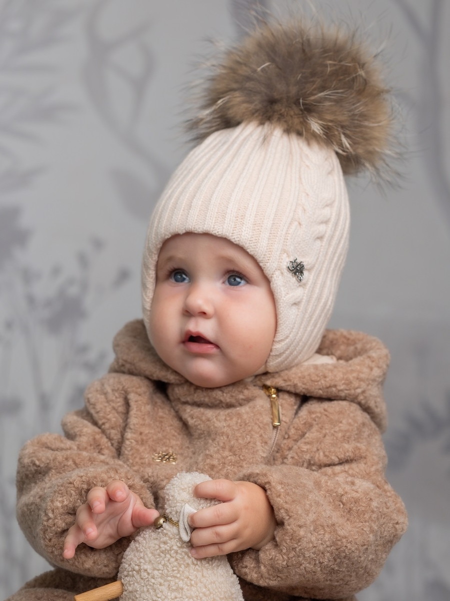 Шапочка НаследникЪ Выжанова с мех. помпоном на завязках НВ1023 светло-бежевый 38Нет оценокХарактеристики
