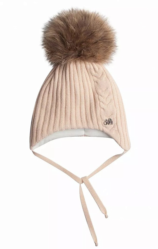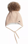 Шапочка НаследникЪ Выжанова с мех. помпоном на завязках НВ1023 светло-бежевый 38