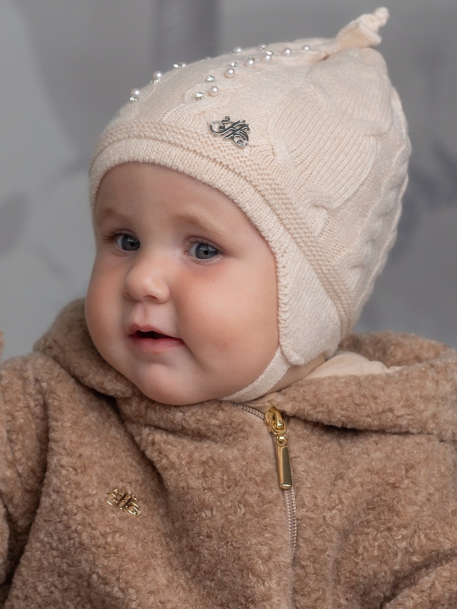 Шапочка НаследникЪ Выжанова с помпоном на завязках НВ1032 бежевый 38