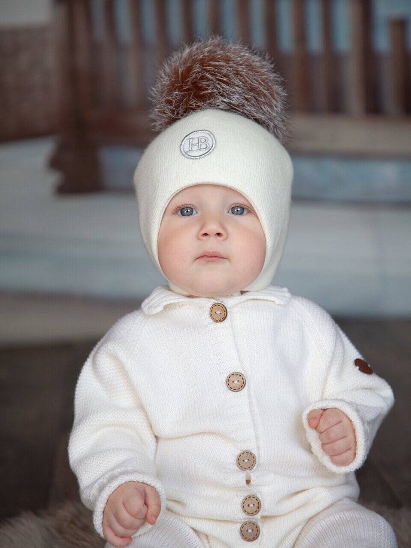 Детская шерстяная шапочка - идеальное решение для зимних прогулок. Удобные мягкие завязочки позволяют шапочке плотно сидеть на голове и не сползать на глаза. Шапочка хорошо закрывает ушки, защищая от холода и ветра. Изделие изготовлено из шерсти мериноса с добавлением кашемира, имеет хлопковый подклад и утеплитель термофин, головке малыша будет мягко и тепло. Шапка украшена фирменным логотипом и помпоном из натурального меха песца.