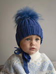 Шапочка НаследникЪ Выжанова с цвет. помпоном на завязках НВ5007 джинс 38