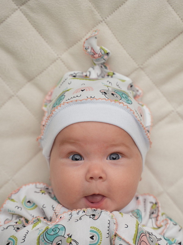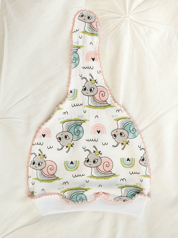 Хлопковая ткань, из которой сшита шапочка, обладает рядом полезных свойств. Во-первых, хлопок является гипоаллергенным материалом, что делает его идеальным выбором для детской одежды позволяет коже дышать и предотвращает раздражение. Во-вторых, хлопок натурально впитывает влагу, поэтому шапочка будет быстро сушиться после стирки и оставаться свежей и сухой даже в жаркую погоду.
