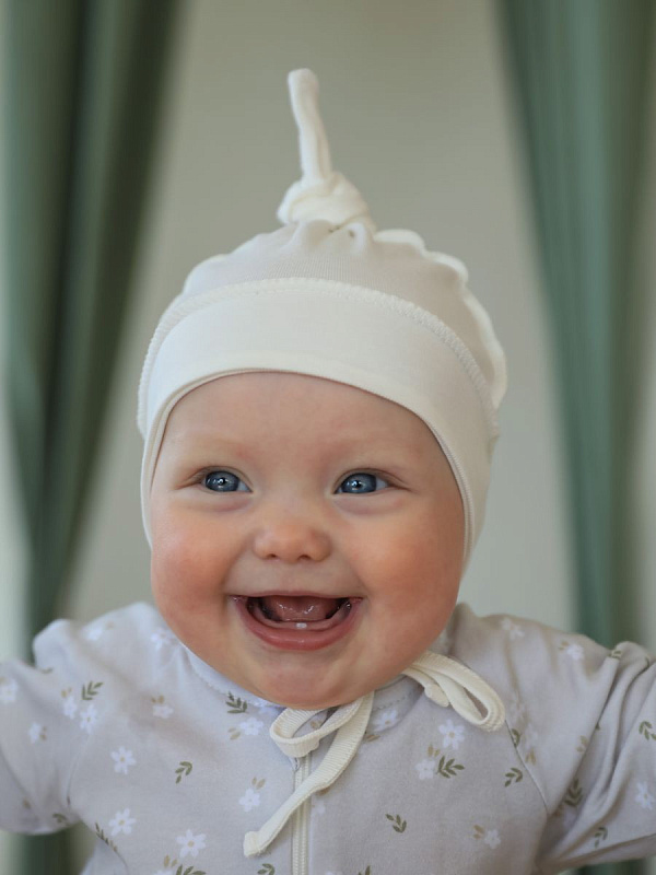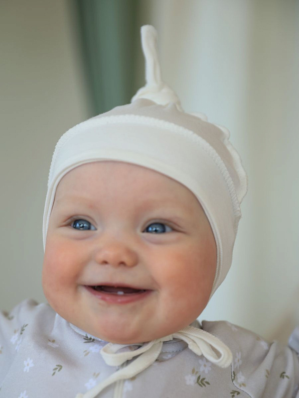 Шапочка с завязками Little Star выполнена из натурального хлопка. Ткань не будет раздражать голову. Модную и мягкую шапочку малыш может носить круглый год, защищая ушки от сквозняков и головку от перегрева на солнце. Декорирована декоративным узелком на затылке.