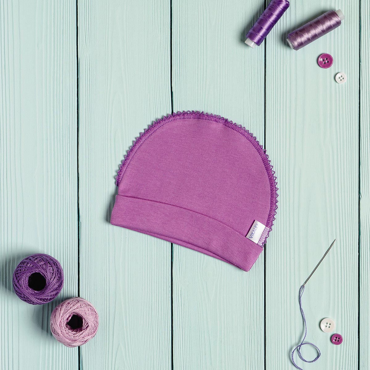 Шапочка выполнена из натуральной хлопковой ткани, которая хорошо пропускает воздух и немного тянется. Швы изделия выполнены с наружной части и не вызывают дискомфорта у ребенка.