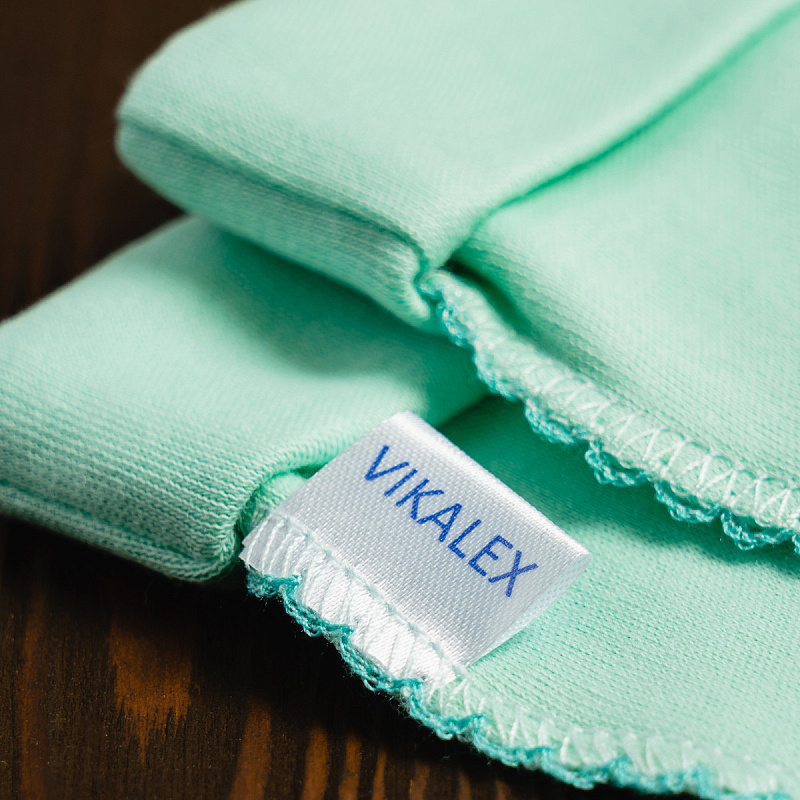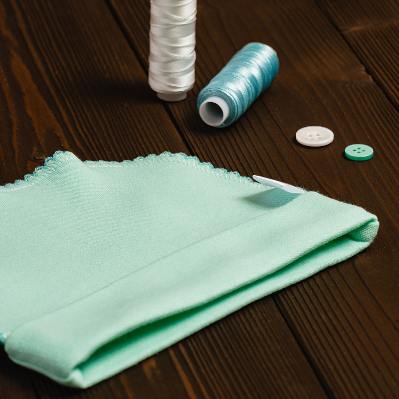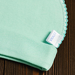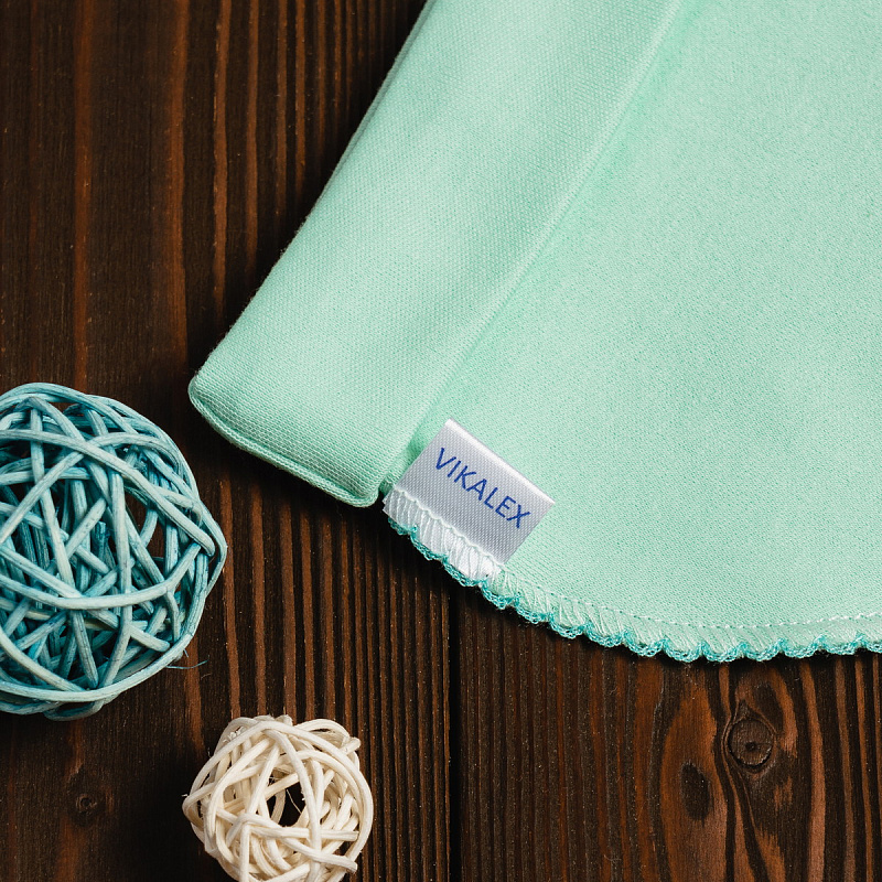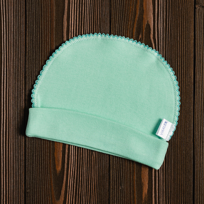 Шапочка выполнена из натуральной хлопковой ткани, которая хорошо пропускает воздух и немного тянется. Швы изделия выполнены с наружной части и не вызывают дискомфорта у ребенка.