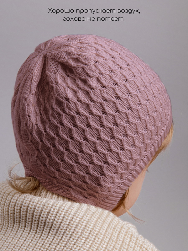 Шапочка вязаная AmaroBaby Berry демисезонная ЧЗ пудровый 38