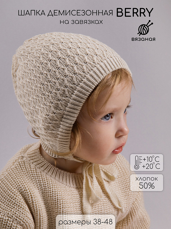 Шапочка вязаная AmaroBaby Berry демисезонная ЧЗ светло-бежевый 42