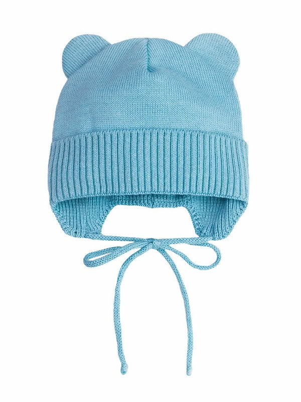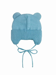 Шапочка вязаная AmaroBaby Pure Love Bear с подкладом ЧЗ голубой 38