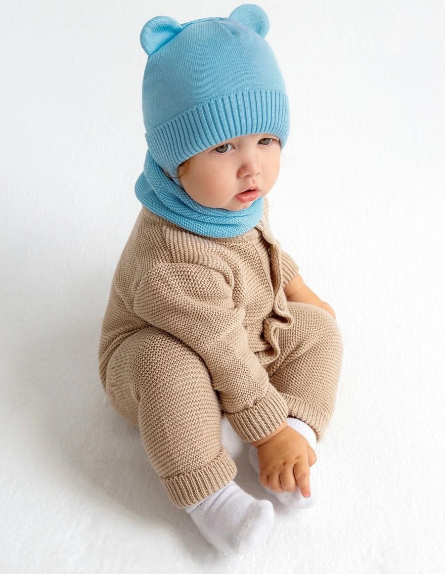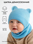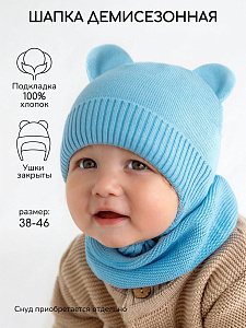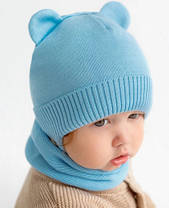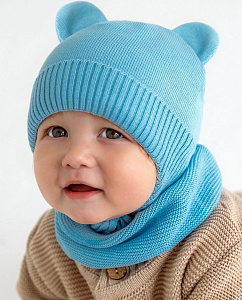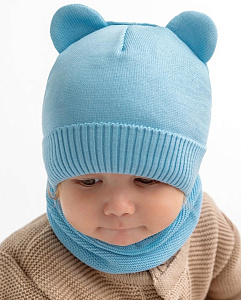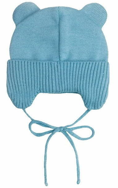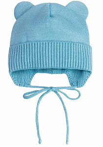 Шапочка вязаная AmaroBaby Pure Love Bear с подкладом ЧЗ голубой 46