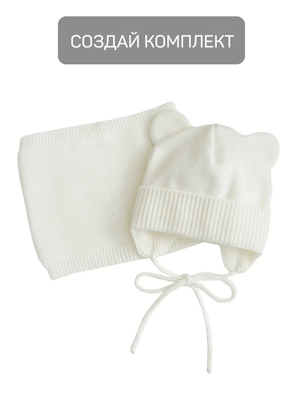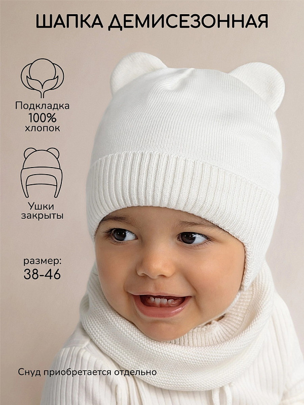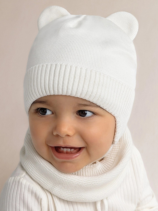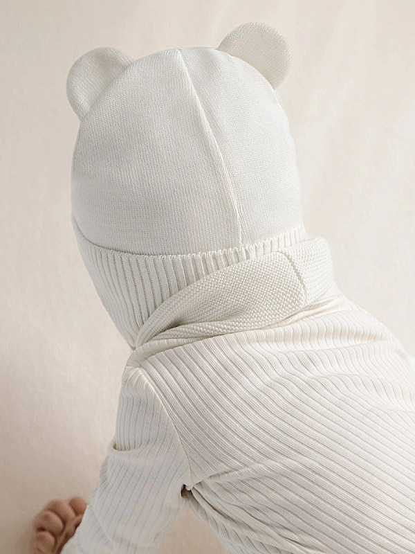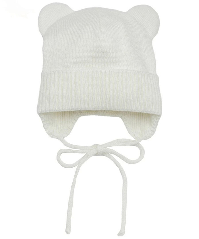 Шапочка вязаная AmaroBaby Pure Love Bear с подкладом ЧЗ молочная 40