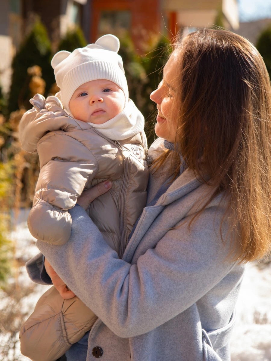 Шапочка зарекомендовала себя отличной посадкой на голову малыша. Удобные завязки и дополнительные изгибы на ушках позволяют шапочке плотно зафиксироваться в правильном положении на голове ребенка.