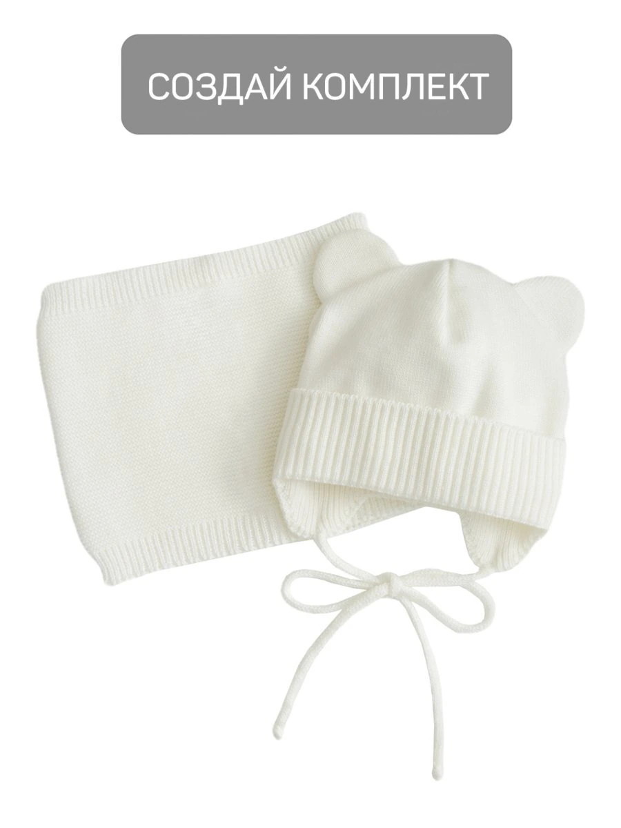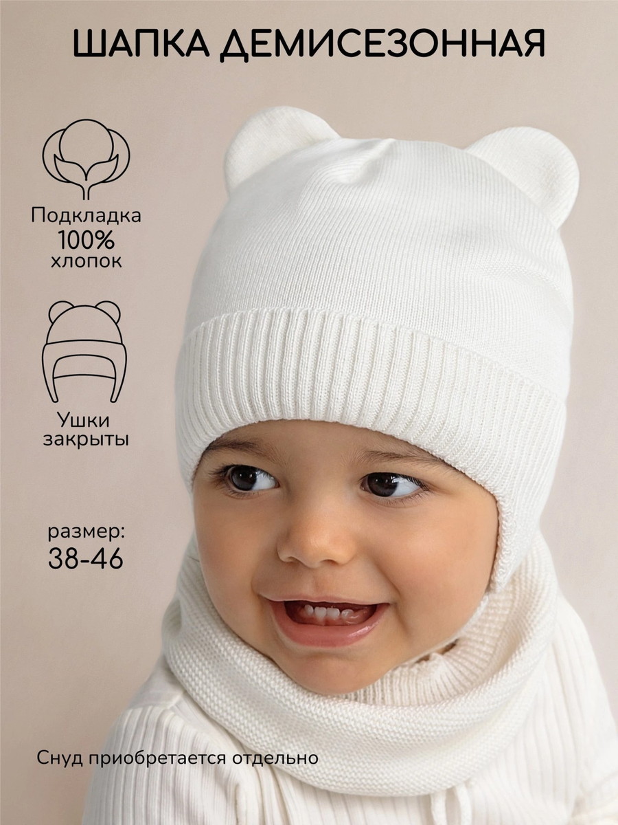 Шапочка вязаная AmaroBaby Pure Love Bear с подкладом ЧЗ молочная 46