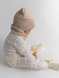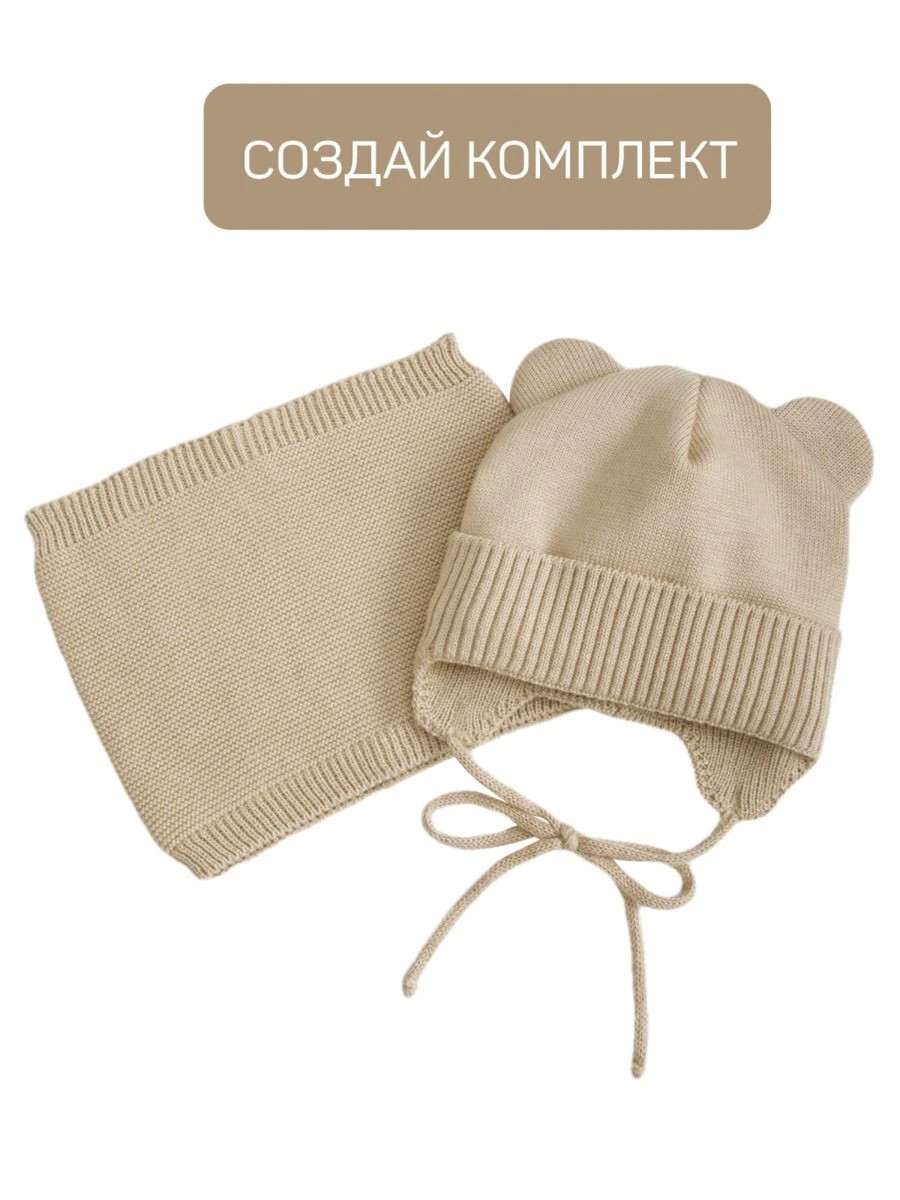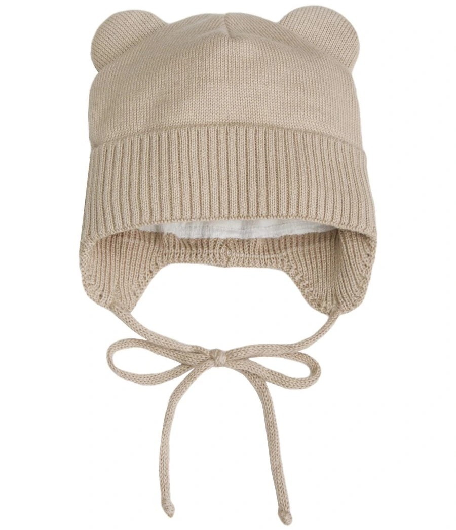 Шапочка вязаная AmaroBaby Pure Love Bear с подкладом ЧЗ песочный 38