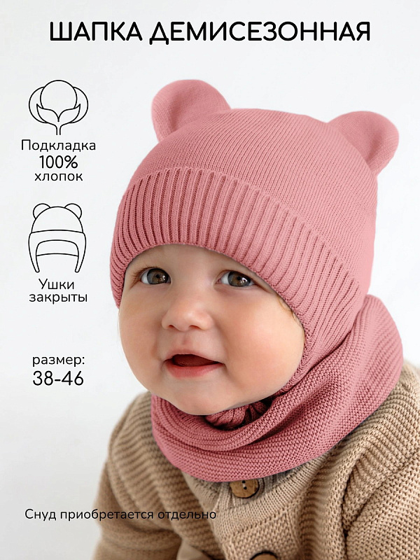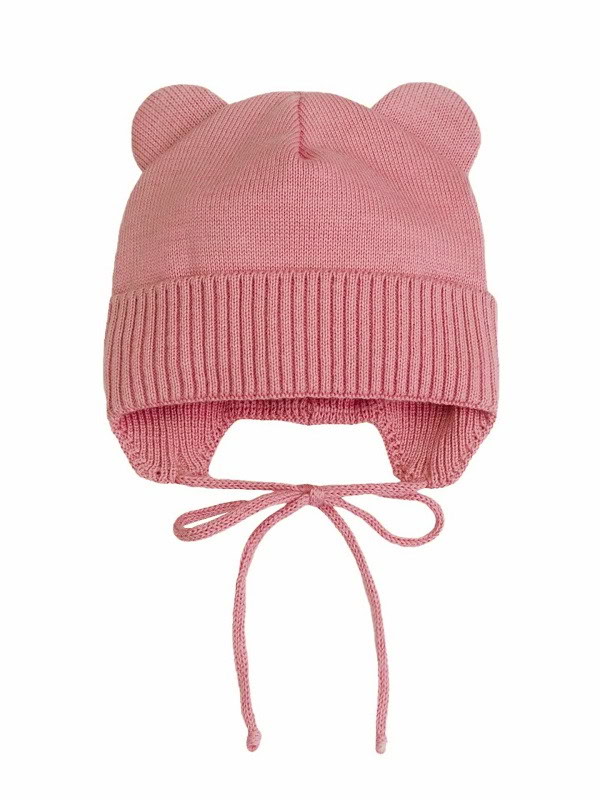 Шапочка вязаная AmaroBaby Pure Love Bear с подкладом ЧЗ розовый 38