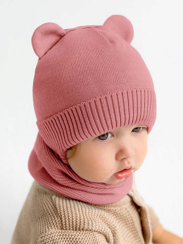 Шапочка вязаная AmaroBaby Pure Love Bear с подкладом ЧЗ розовый 46