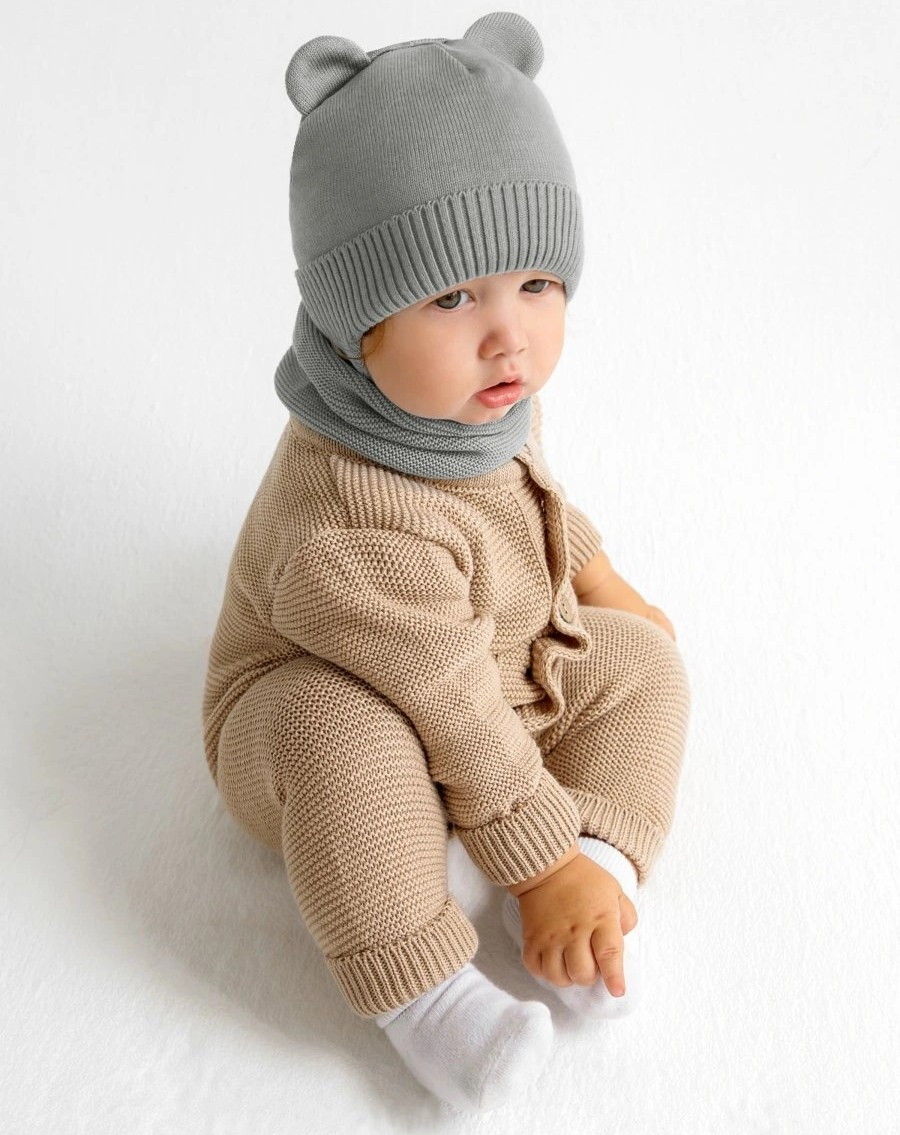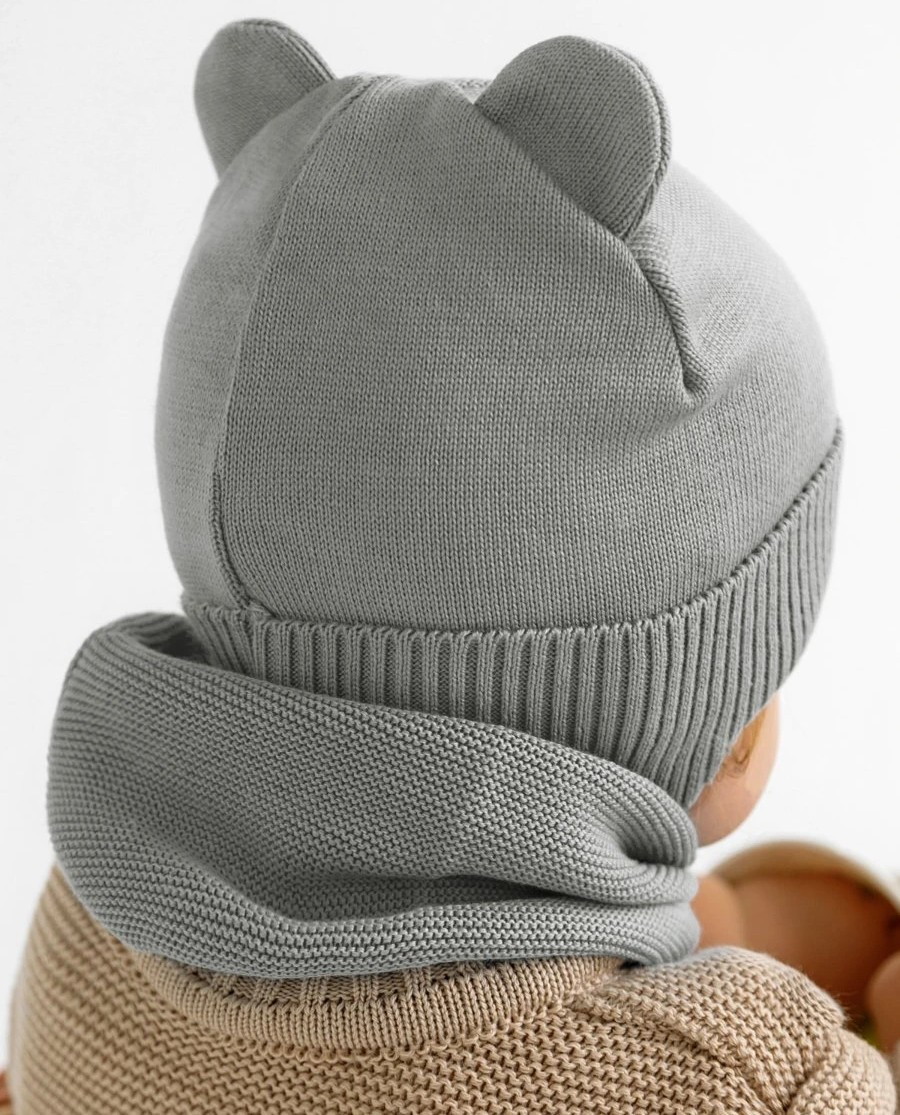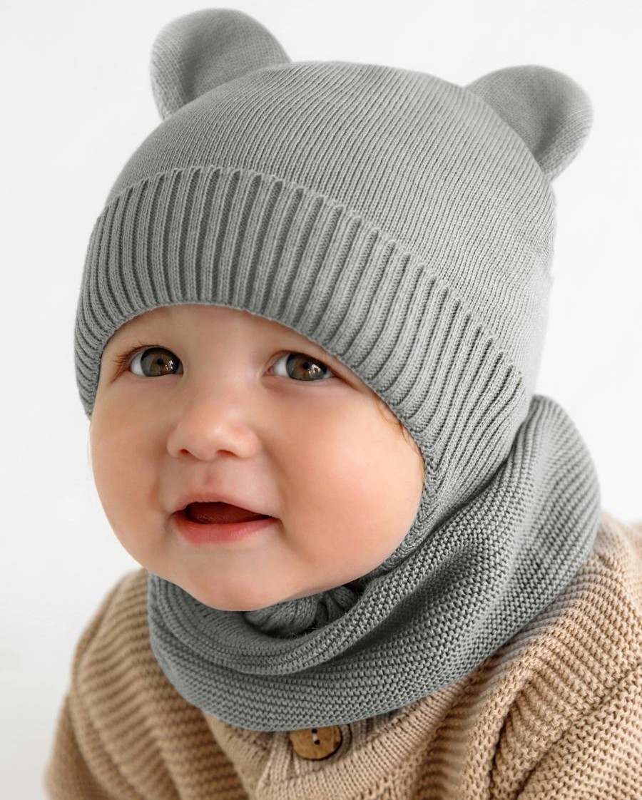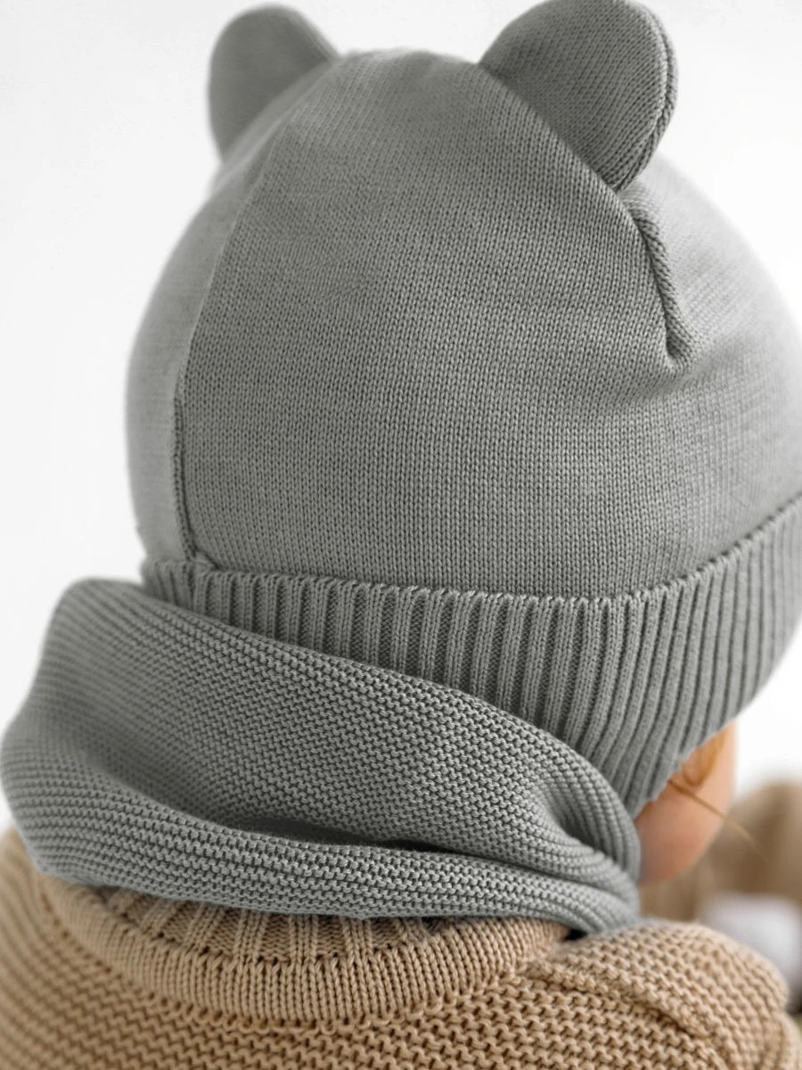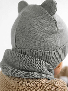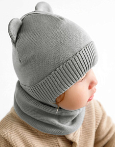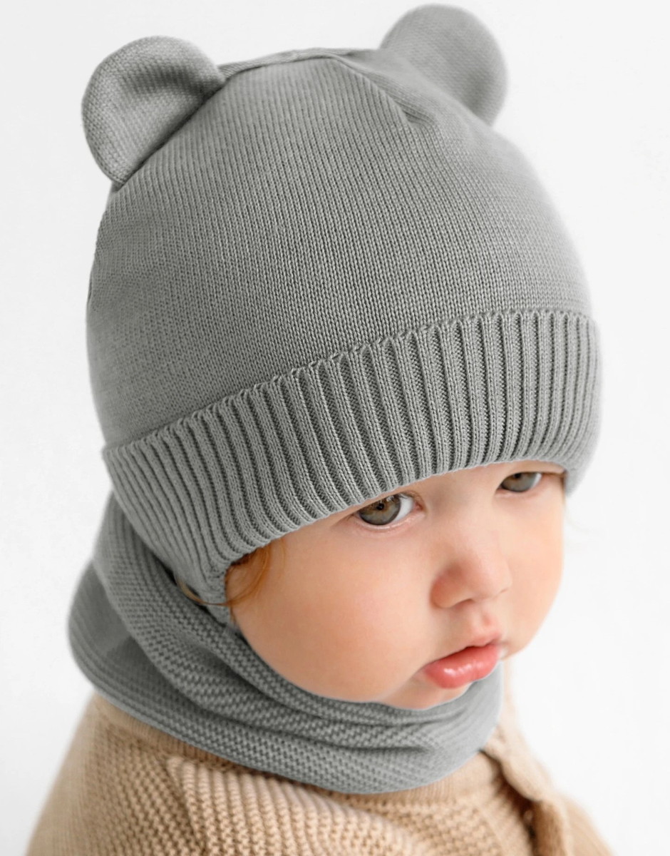 Шапочка вязаная AmaroBaby Pure Love Bear с подкладом ЧЗ серый 40