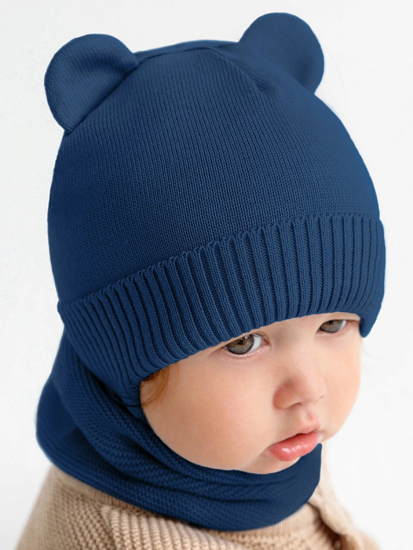 Шапочка вязаная AmaroBaby Pure Love Bear с подкладом ЧЗ синий 56