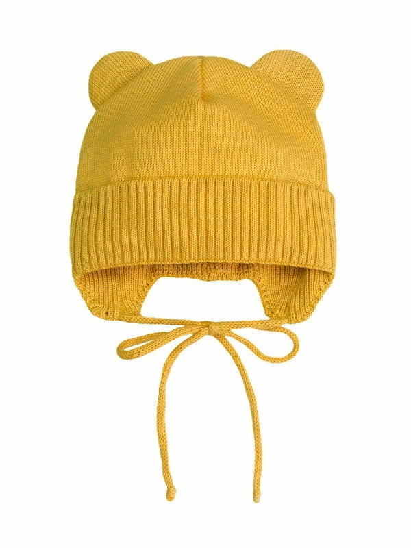 Шапочка вязаная AmaroBaby Pure Love Bear с подкладом ЧЗ желтый 38