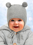 Шапочка вязаная AmaroBaby Pure Love Pompony с подкладом ЧЗ серый 38