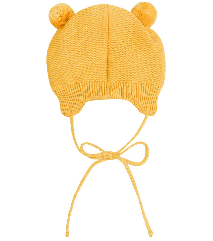 Шапочка вязаная AmaroBaby Pure Love Pompony с подкладом ЧЗ желтый 42